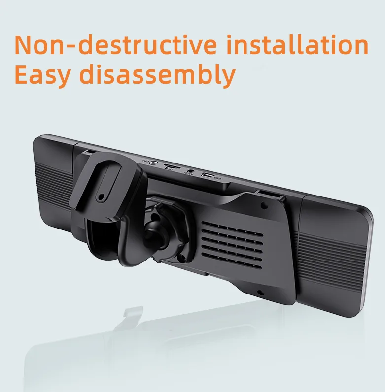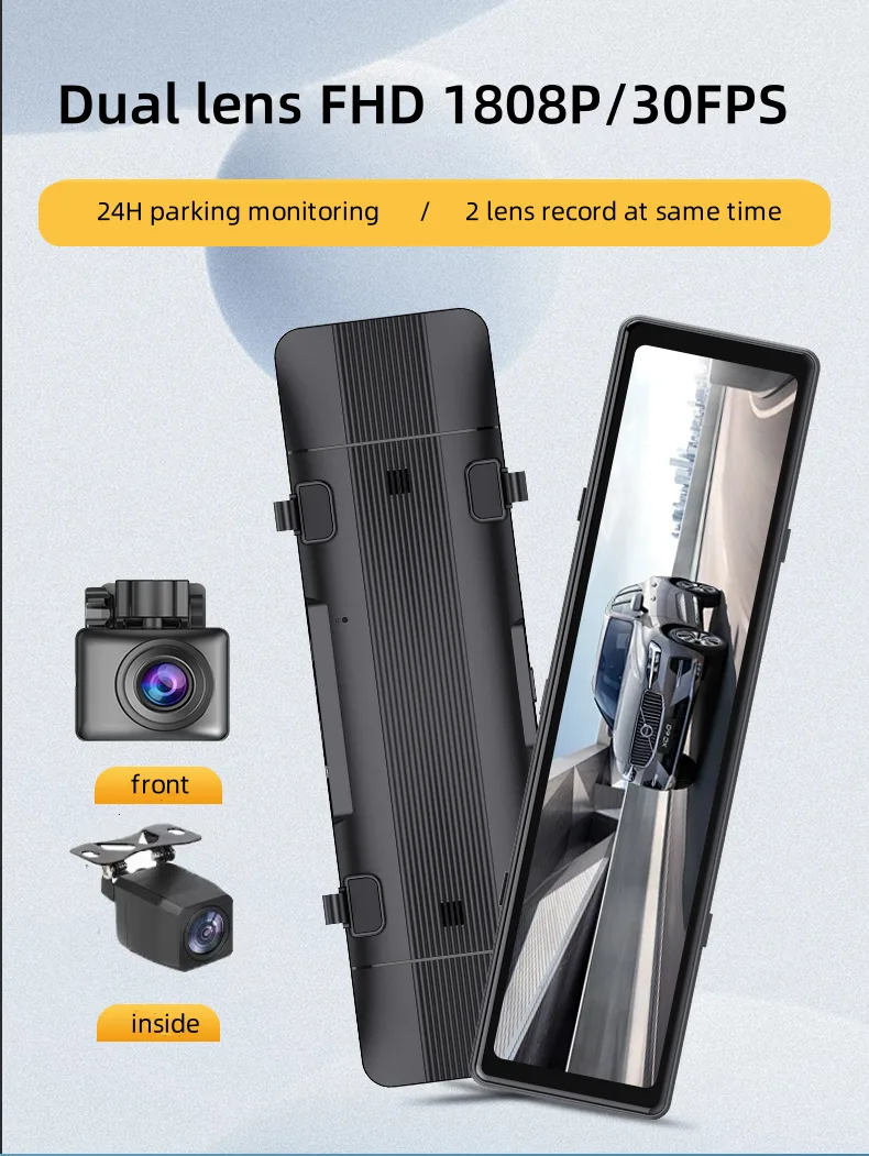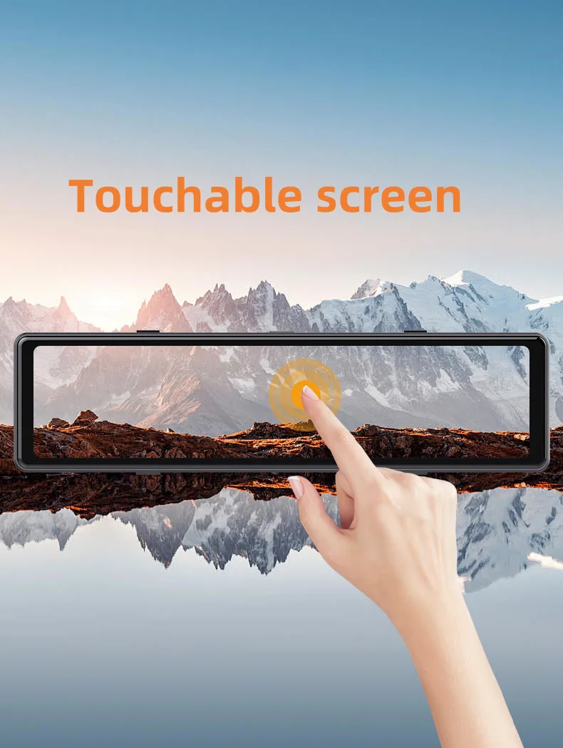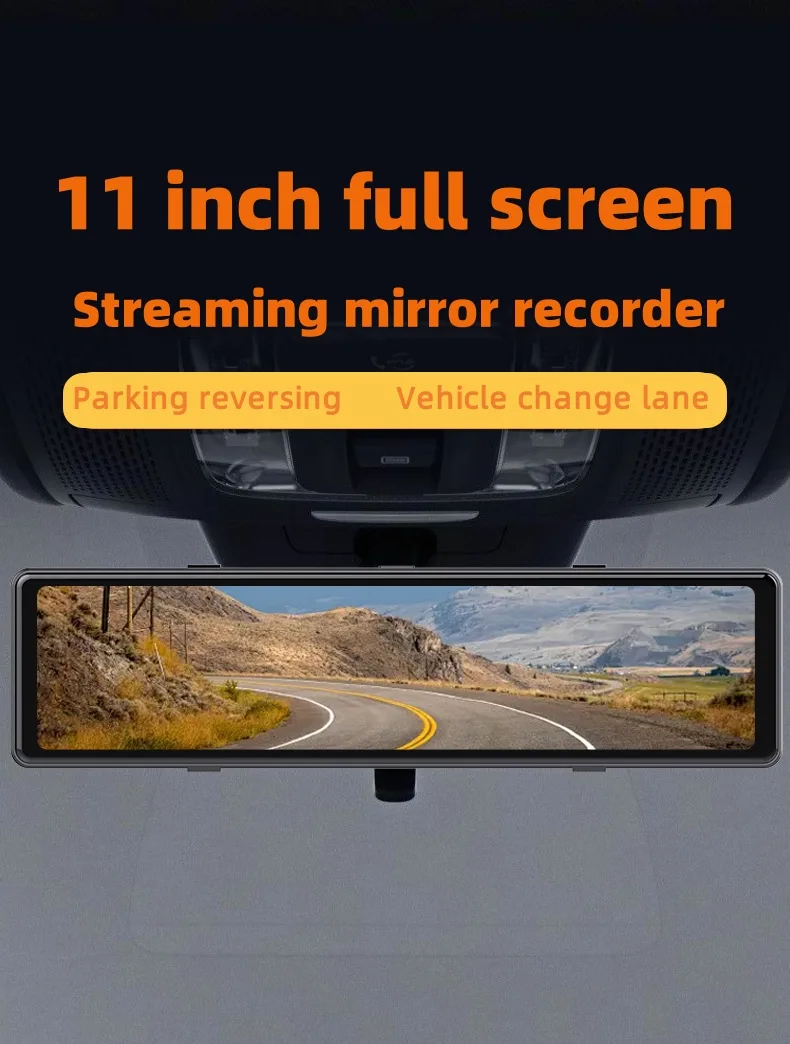 C111 mirror dash cam is with 11 inch big screen camera. The big and touchable screen make operation much more clear and easier. It support WDR, parking reversing, loop recording, motion detection, G-sensor, voice and video recording, night vision, 24H parking monitoring and playback function. Front lens is rotatable, you can turn and adjust the recording angle.