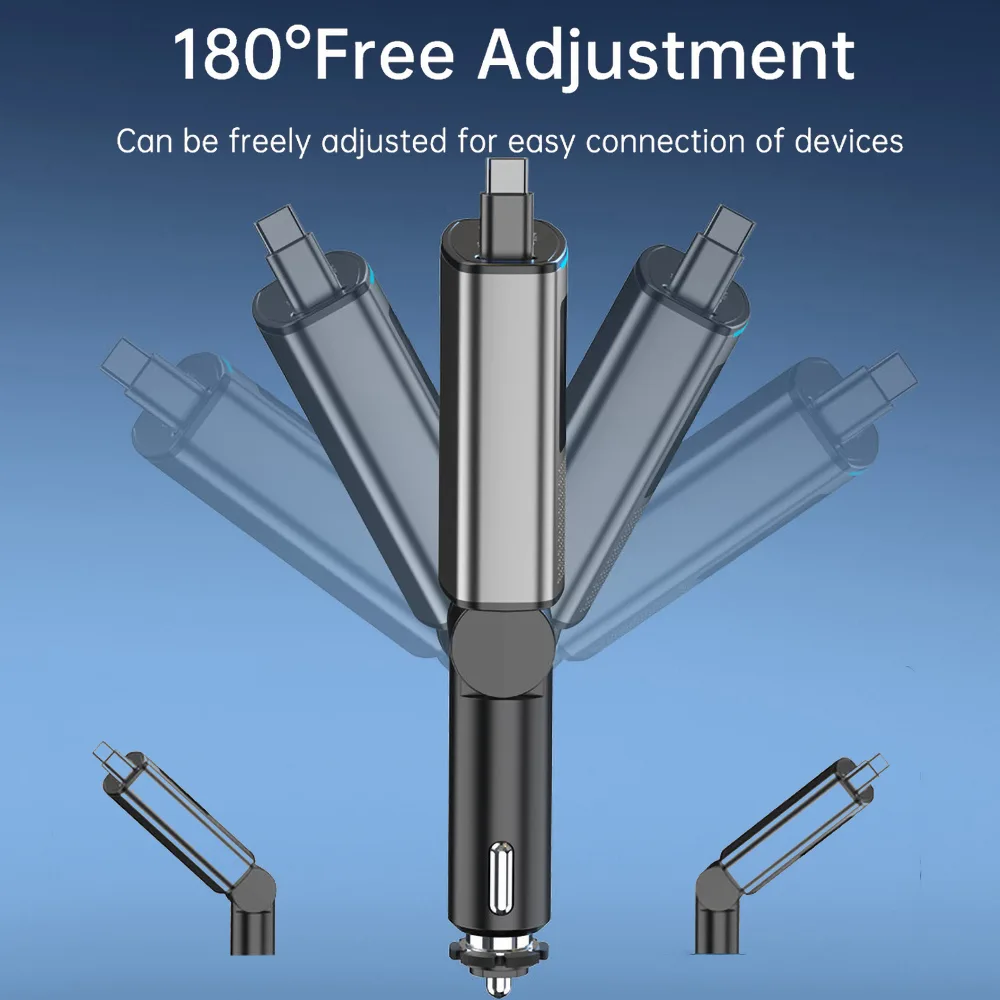 3 in 1 Retractable Cable Car Charger 80.5W Fast Charging
