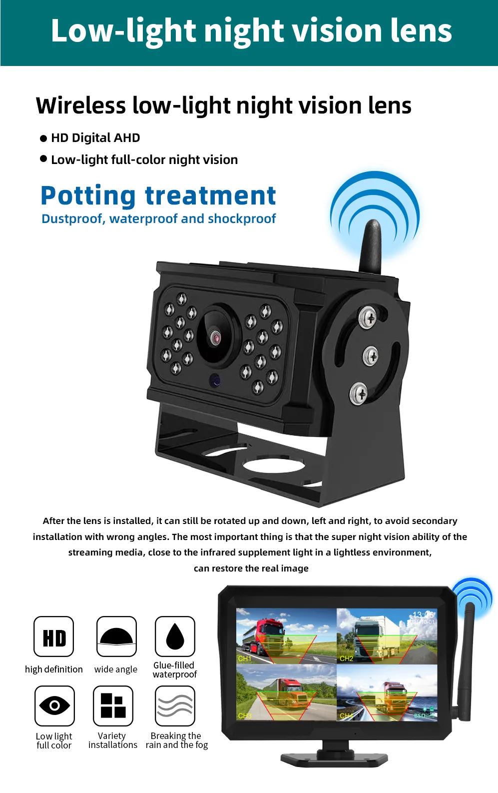 - Can be rotated up and down, left and right, to avoid secondary installation with wrong angle