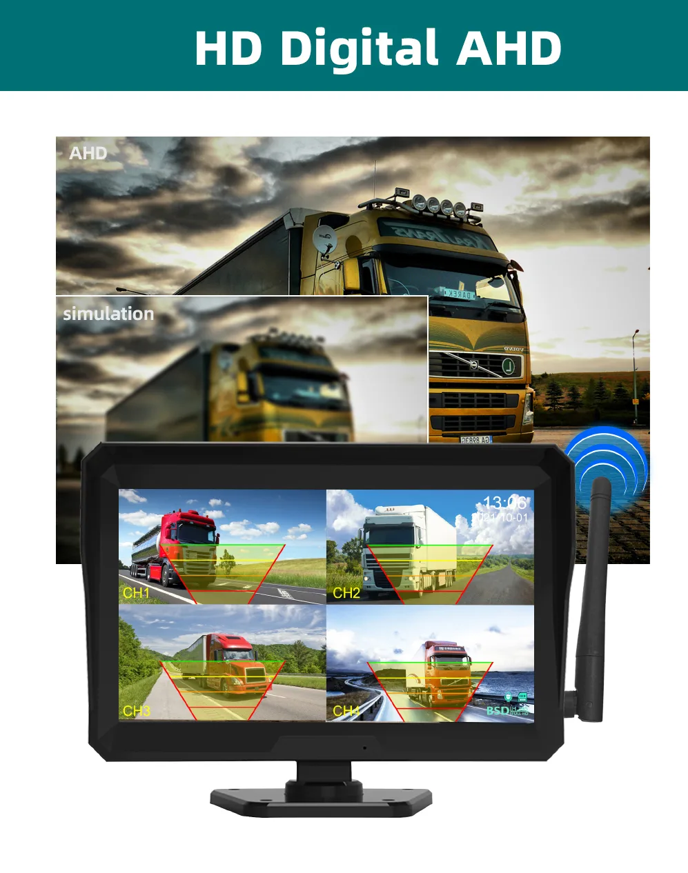 This wireless magnetic solor truck recorder is with intuittive ruler display, support 128G TF card which can store large video file. Th e loop recording function would delete oldest videos automatic. Two-way and four-way monitoring for truck is optional