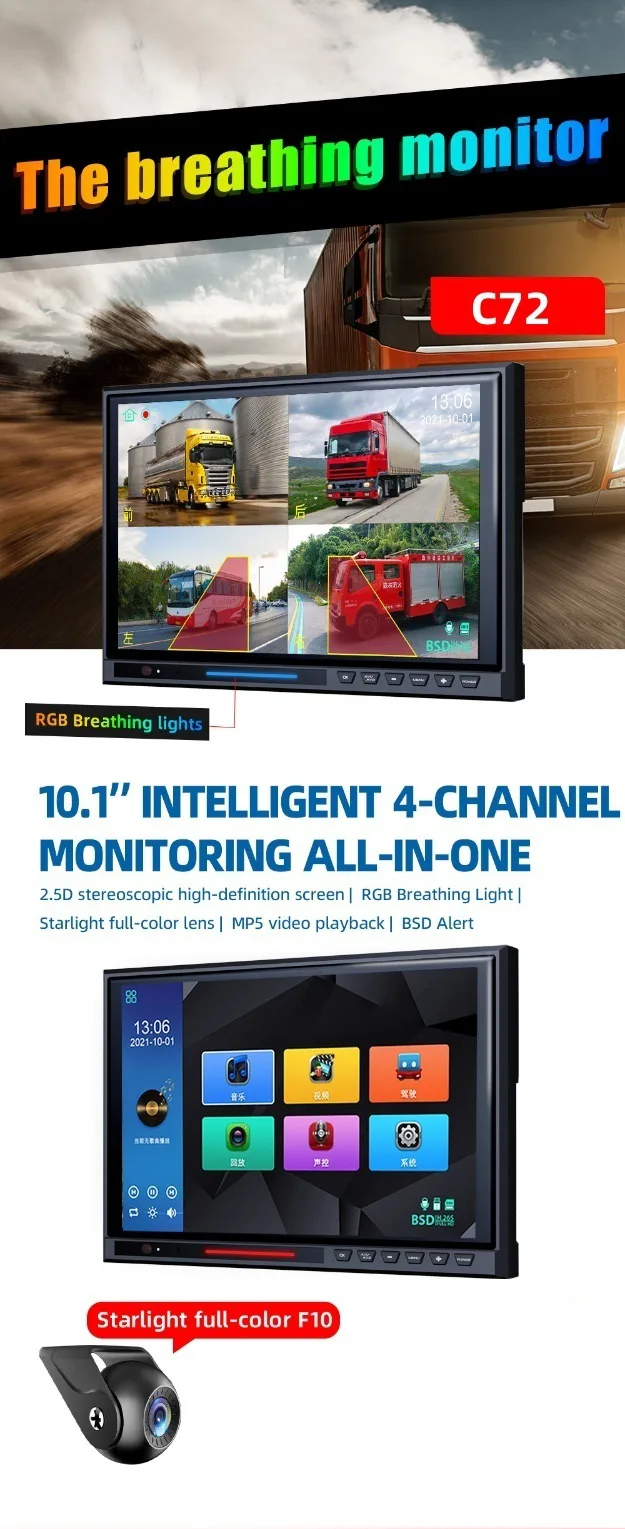 10 inch screen 4 channel truck monitoring BSD All in One with MP5 video playback