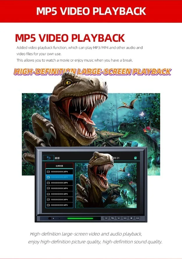 - MP5 VIDEO PLAYBACK, which allow you to watch a movie or enjoy music when you have a break