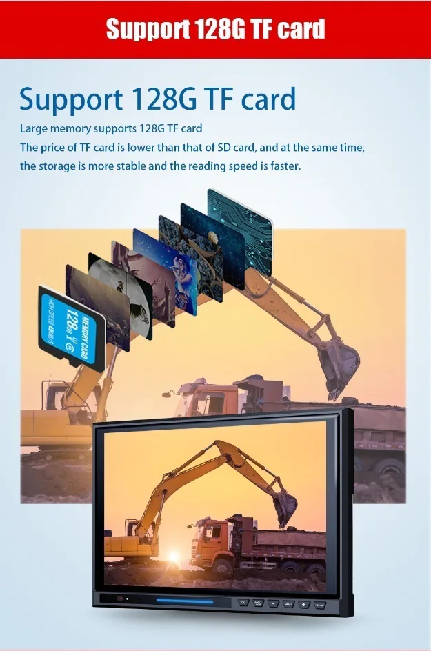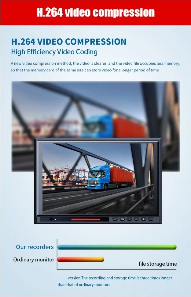 This 10 inch big screen van/truck/vehicel camcorder which support 5-way monitoring. It’s allowing you control by voice and button operation, intuitive ruler display and reversing view display very clear. The H.264 high efficiency video compression make sure video tranfer faster and clearer. BSD function would detect dead zone dynamic.