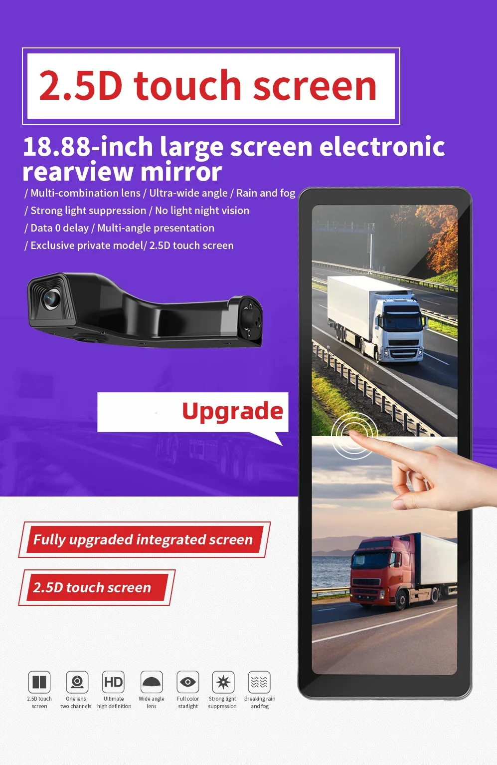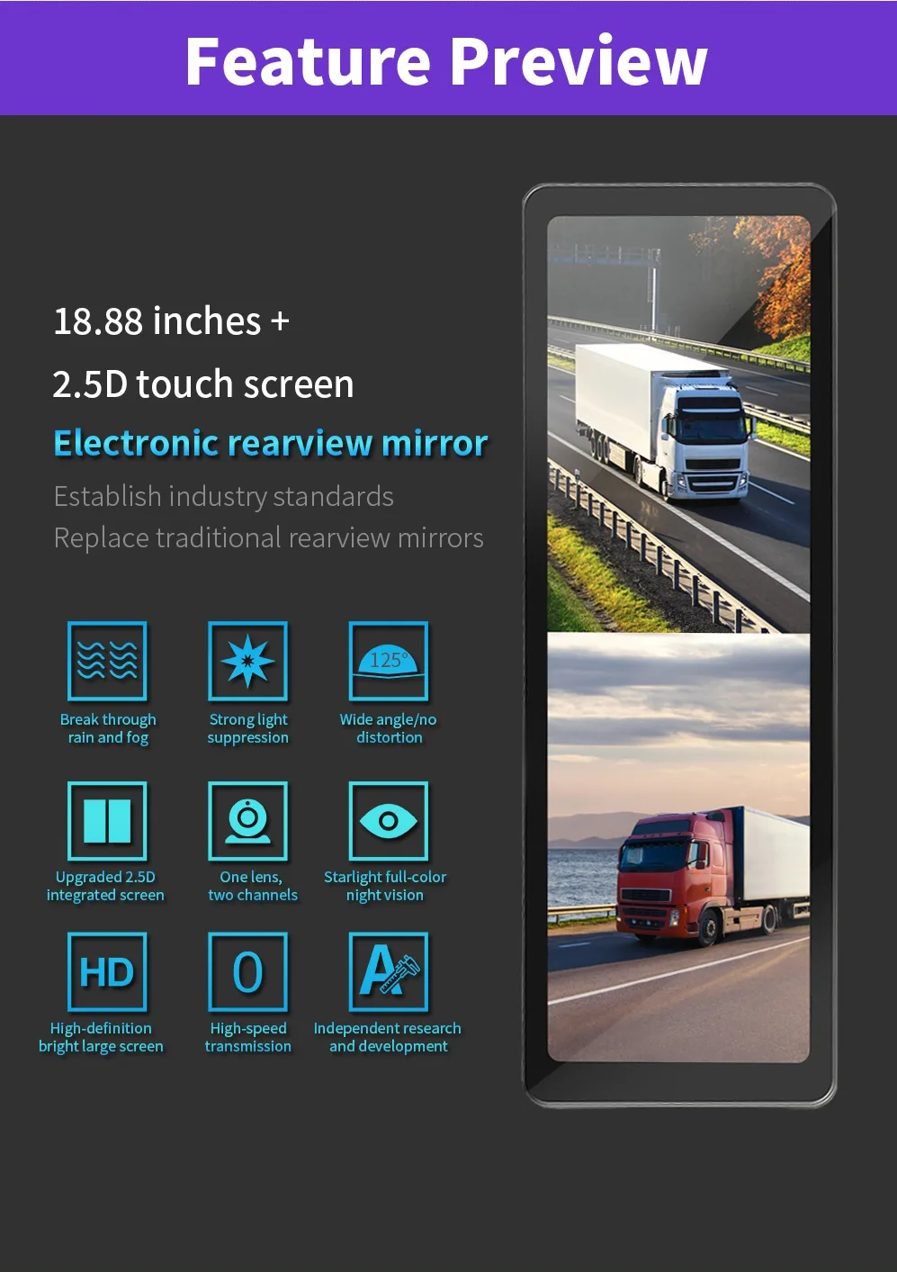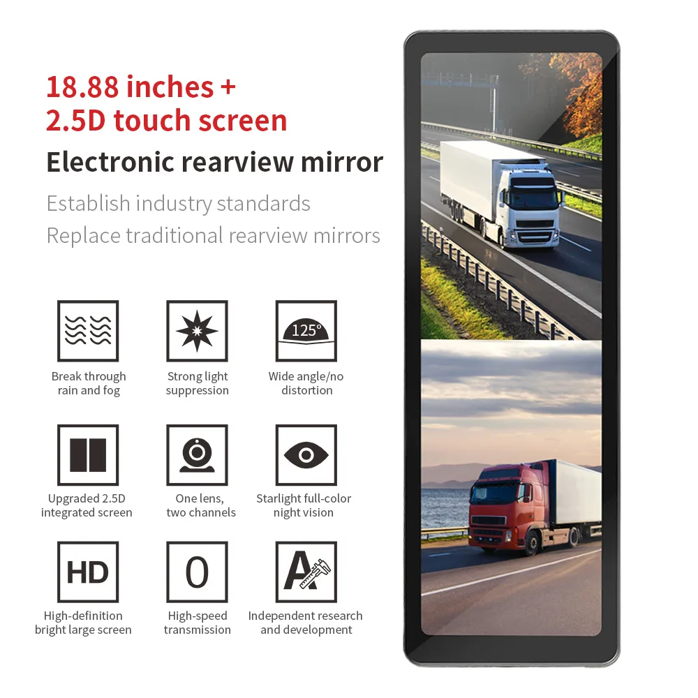 Upgrade your driving experience with the C96 18.88-Inch Touch Screen Electronic Rear View Mirror Monitor, a cutting-edge replacement for traditional rearview mirrors. This ultra-wide, high-definition display provides crystal-clear visibility while integrating smart monitoring and safety features for modern vehicles.