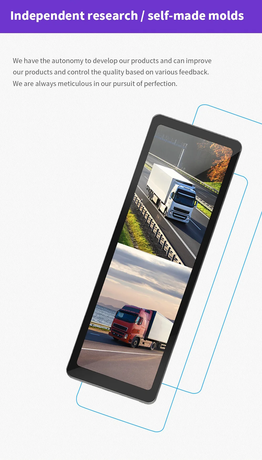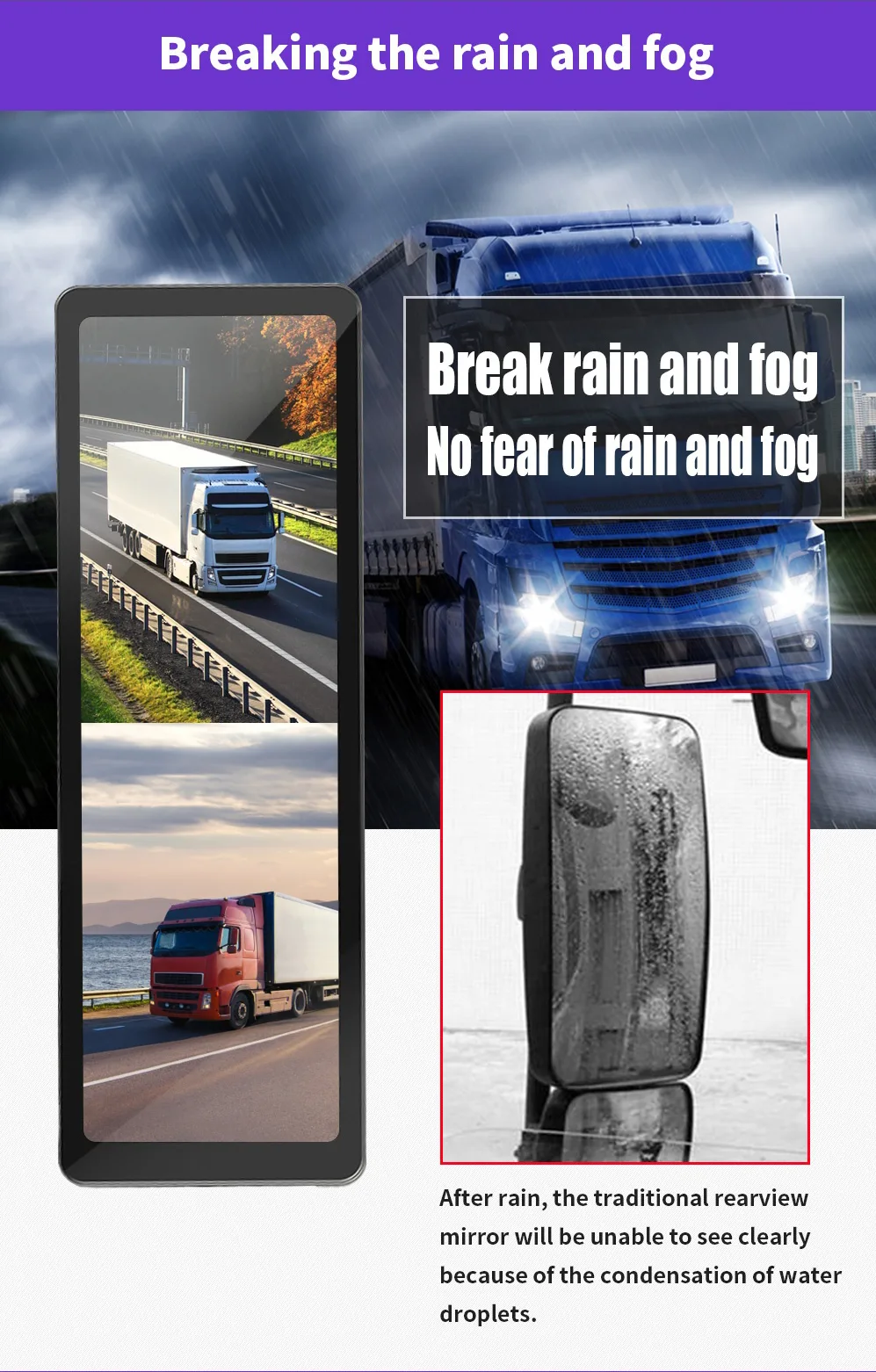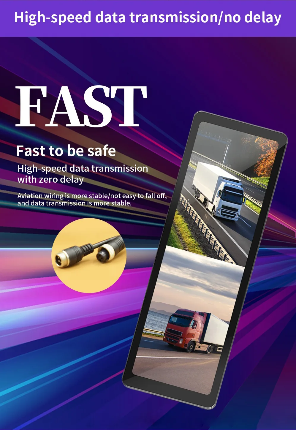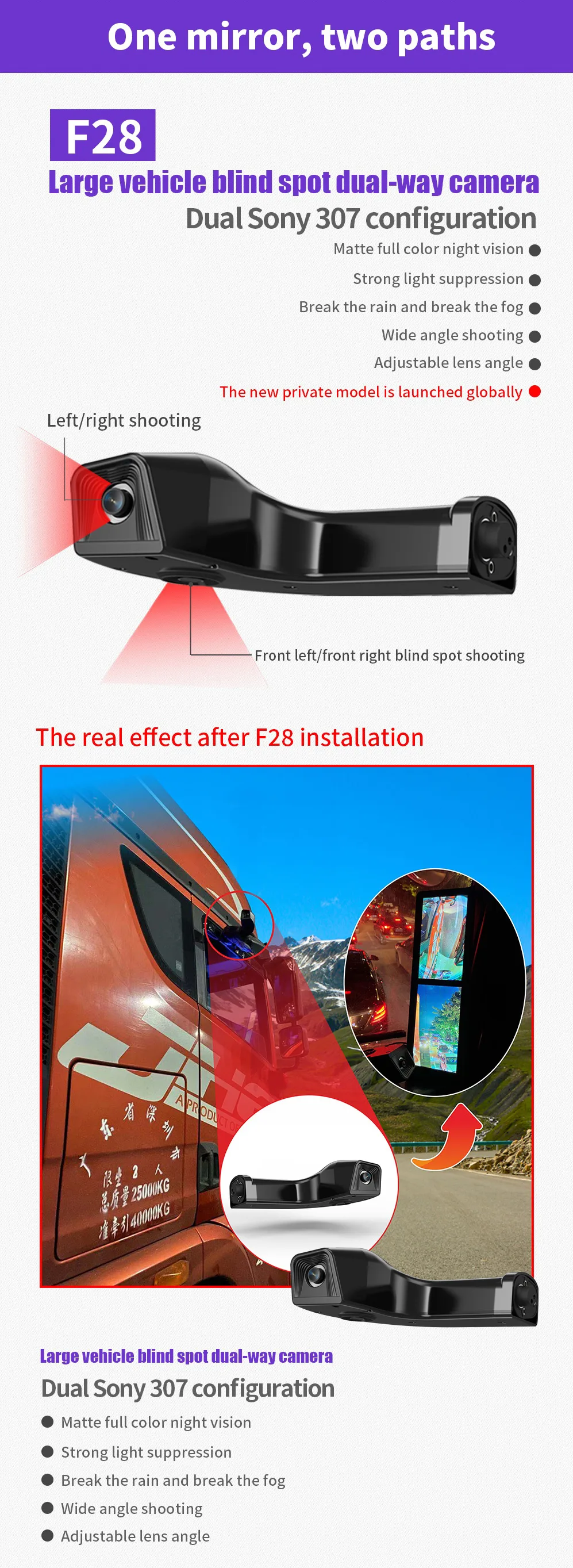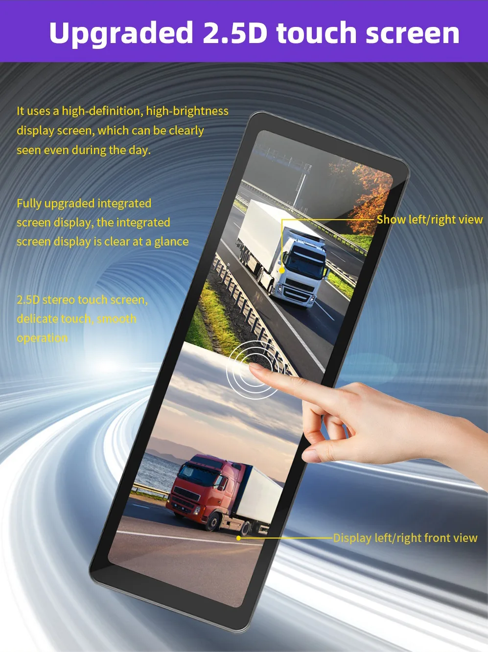 - Dual-way Camera Input – Large vehicle blind spot dual-way camera