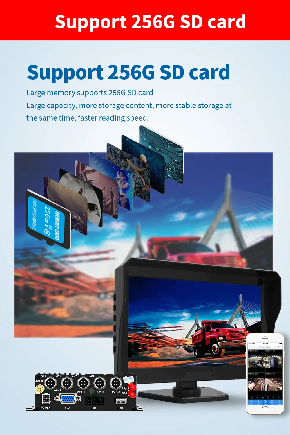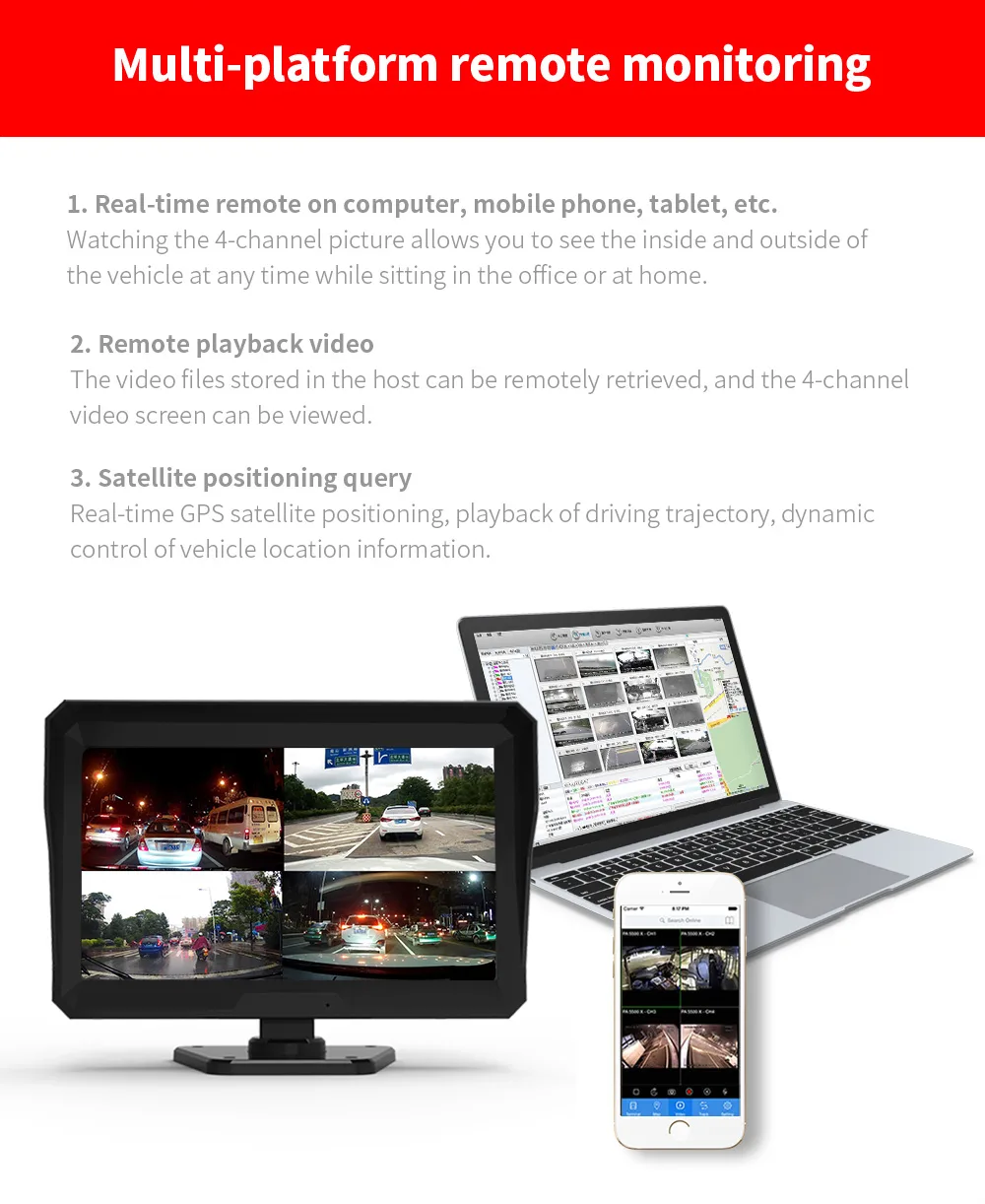The C98 10.1-Inch Large Screen 4G Remote Monitoring All-in-One Machine is a cutting-edge vehicle monitoring system designed for fleet management, trucks, and commercial vehicles. Featuring a high-resolution 10.1-inch touchscreen, this device offers real-time 4G remote monitoring, allowing fleet managers to track vehicle status, location, and driver behavior from anywhere.