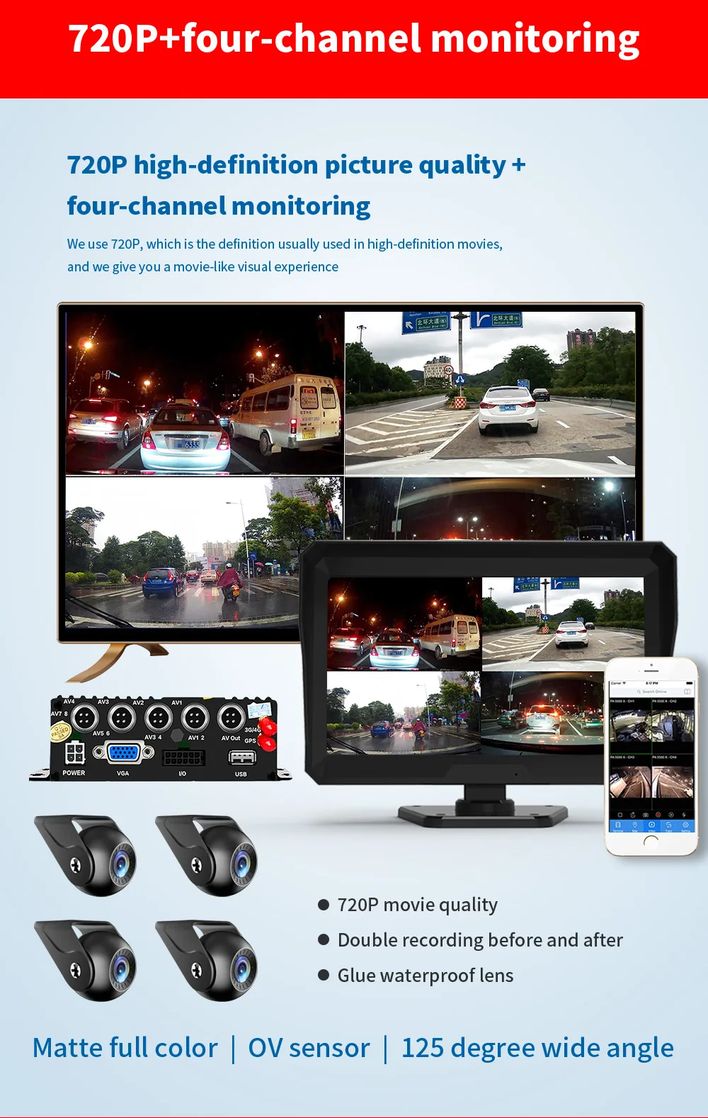 - Â 4-Channel Recording – Simultaneous recording from 4 cameras (front/rear/sides)