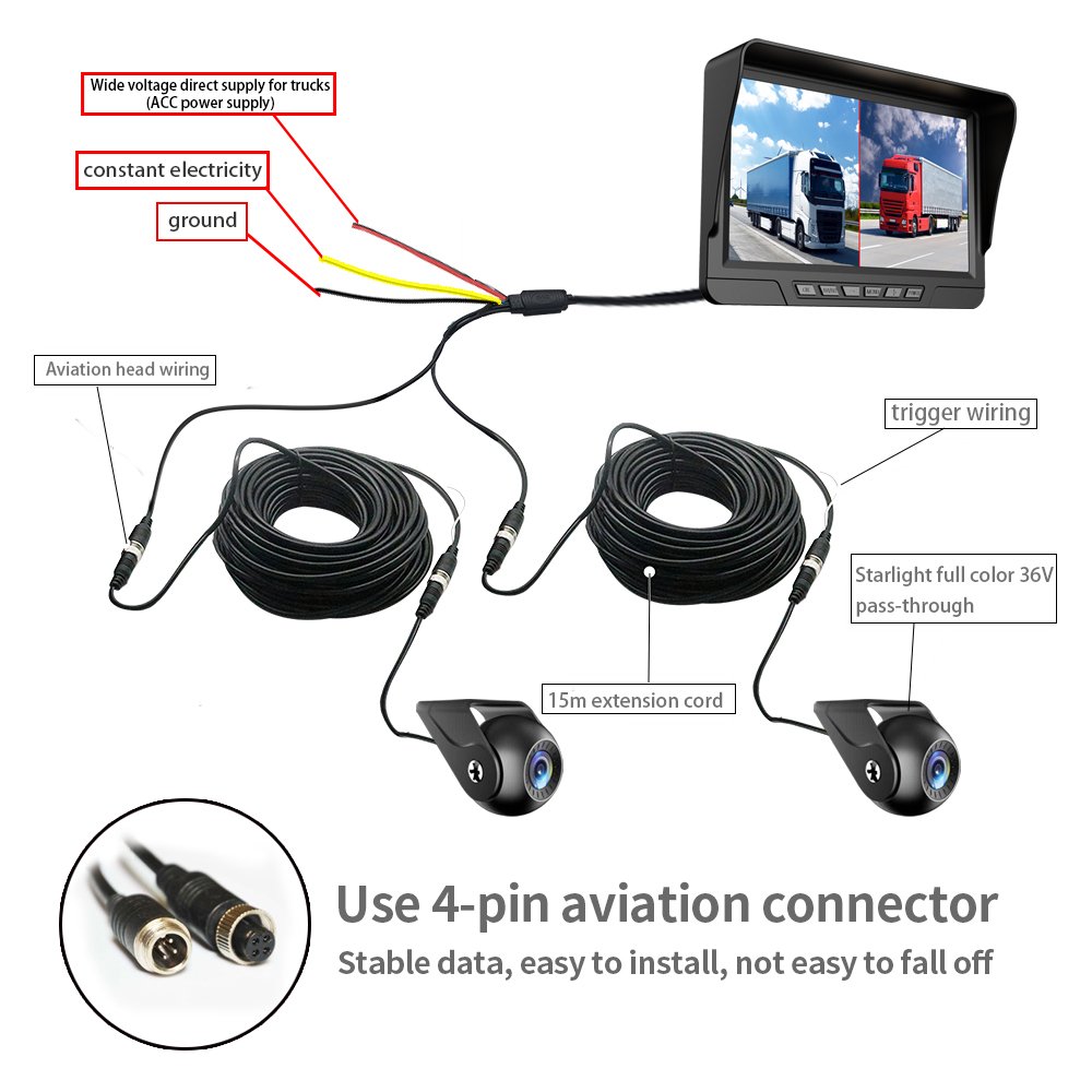 7 inch HD dual lens recording matt full color truk camera