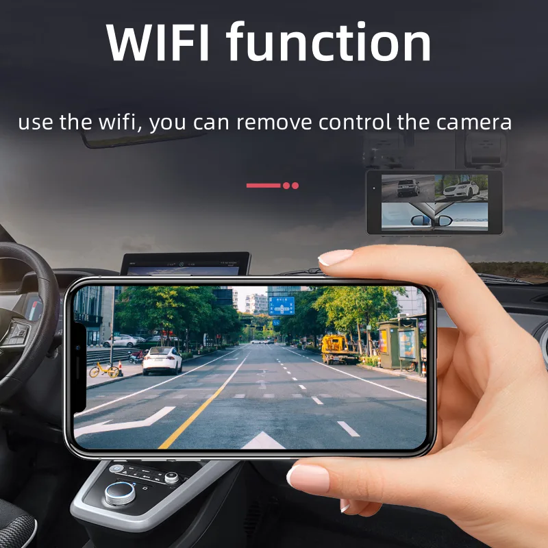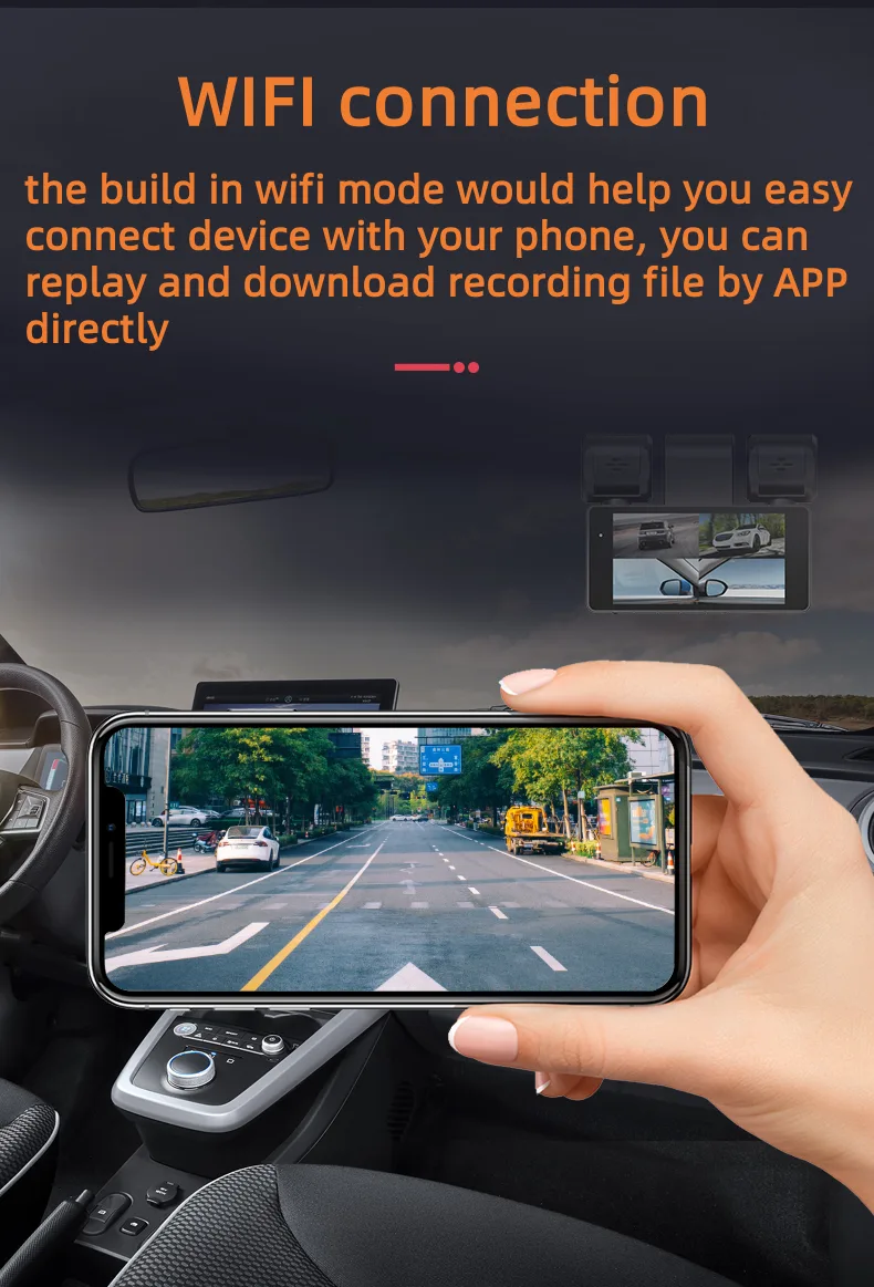 *camera support with WDR, auto recording, voice recording, night vision, loop recording, motion detection, G-sensor, parking monitor, playback function. It also with multiple language. The rear view lens with reversing function.